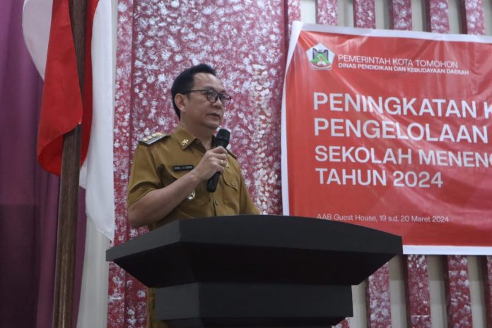 Kesempatan, Wali Kota Tomohon menyampaikan apresiasi dan penghargaan setinggi – tingginya kepada seluruh stakeholders dunia pendidikan, kepala sekolah dan guru serta pengawas sekolah yang telah memberi sumbangsih bagi kemajuan pendidikan di kota tercinta ini.