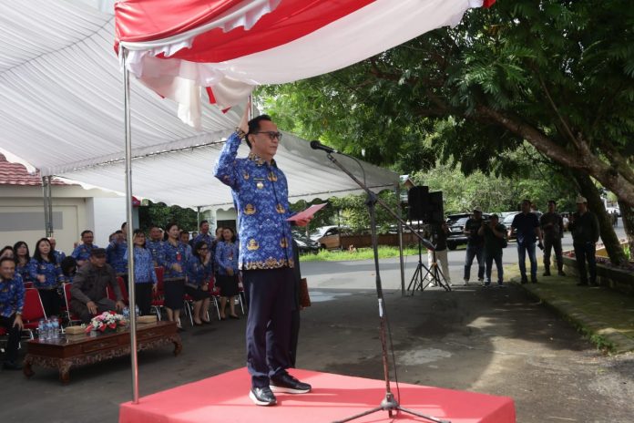 TOMOHON – Wali Kota Tomohon, Caroll J. A. Senduk, S.H menjadi Inspektur Upacara (Irup) pada Peringatan Hari Lahir (Harlah) Pancasila, bertempat di Lapangan Kantor Wali Kota Tomohon, Sabtu (1/6/2024).