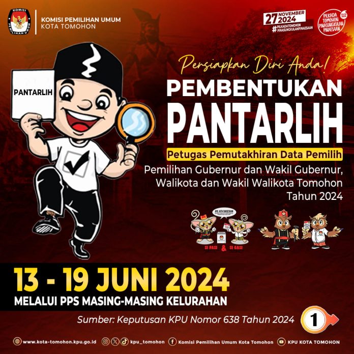TOMOHON – Komisi Pemilihan Umum (KPU) Kota Tomohon resmi mengumumkan pembentukan Calon Petugas Pemutakhiran Data Pemilih (Pantarlih) untuk Pemilihan Gubernur dan Wakil Gubernur, Wali Kota dan Wakil Wali Kota Tahun 2024.