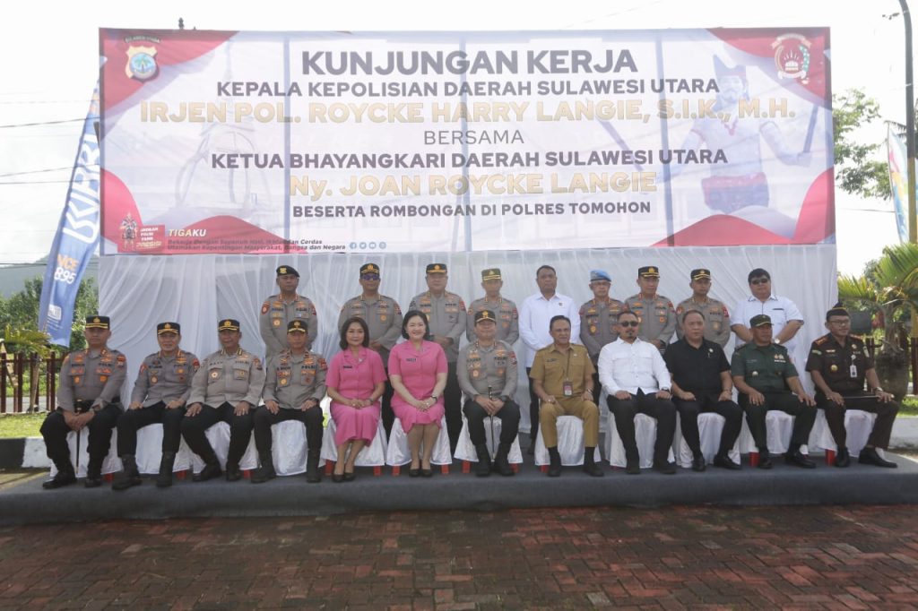 Kunjungan kerja tersebut juga dihadiri oleh Ketua Bhayangkari Daerah Sulawesi Utara, Ny. Joan Roycke Langie, beserta rombongan di Polres Tomohon.