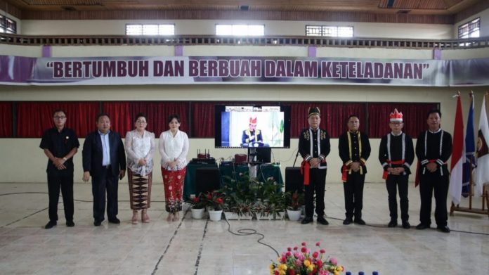 WALENEWS.COM, TOMOHON – Wali Kota Tomohon, Caroll J. A. Senduk, S.H bersama Wakil Wali Kota Tomohon, Sendy G. A. Rumajar, S.E., M.IKom, turut mengikuti kegiatan Gubernur Mengajar yang berlangsung secara daring melalui video conference (Vidcon) dari Ruang Rapat Mapalus Kantor Gubernur Sulut, Jumat (2/5/2025) di Aula SMA Swasta Kristen 1 Tomohon.