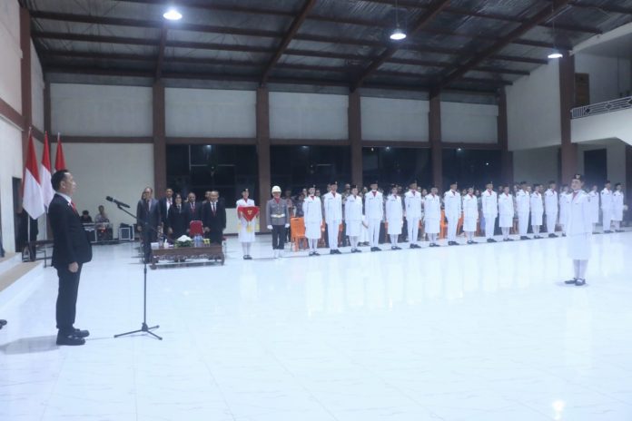 WALENEWS.COM, TOMOHON – Wali Kota Tomohon, Caroll Senduk, SH, memimpin langsung Upacara Pengukuhan Pasukan Pengibar Bendera Pusaka (Paskibraka) Kota Tomohon Tahun 2025 yang digelar pada Jumat (15/8/2025). Dalam kesempatan tersebut, Wali Kota bertindak sebagai pembina upacara sekaligus melakukan pemasangan tanda pengukuhan kepada para anggota Paskibraka.