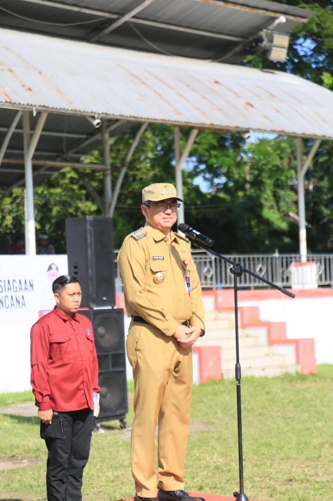 Acara yang merupakan bagian dari rangkaian Bulan Pengurangan Risiko Bencana (PRB) 2025 ini dipusatkan di Lapangan Sparta Tikala, dan dipimpin langsung oleh Wali Kota Manado, Andrei Angouw.