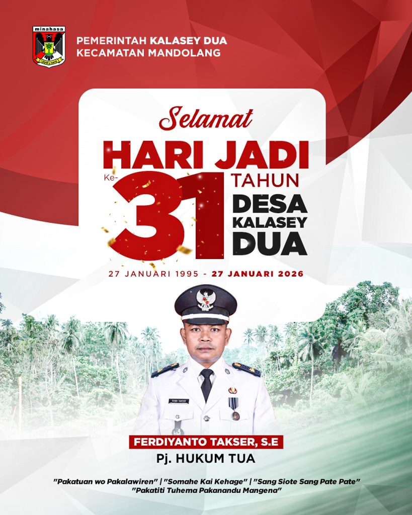 “Di usia yang ke-31 ini, kiranya Desa Kalasey Dua semakin maju, mandiri, dan sejahtera. Ini adalah doa sekaligus target kita bersama ke depan,” ujar Takser kepada media, Selasa (27/1/2025).