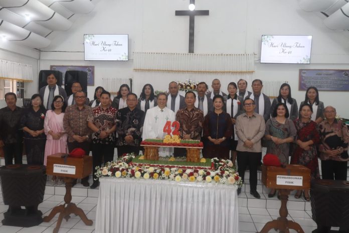 Ia menambahkan bahwa perjalanan pelayanan selama 42 tahun merupakan bukti nyata penyertaan dan kasih Tuhan yang terus mengalir dalam kehidupan jemaat.