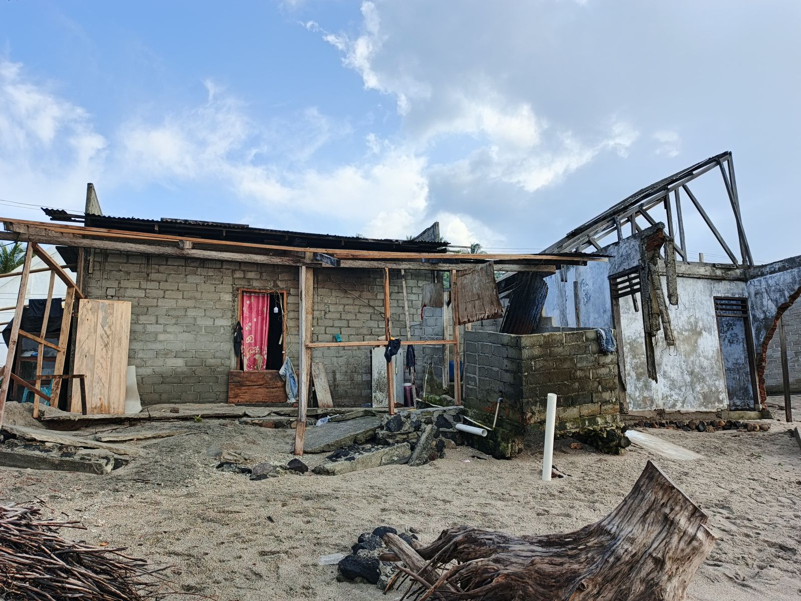 Kerugian: 11 Rumah hancur, akses jalan tertimbun pasir. Kebutuhan Mendesak: Logistik, perbaikan rumah, dan pembangunan pemecah ombak.
